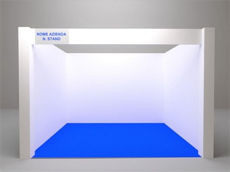 Fascione in legno a perimetro con insegna azienda espositrice 30×50